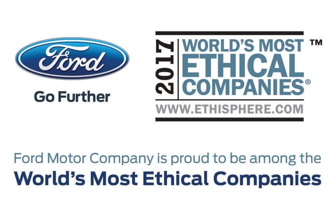 For åttende året på rad har Ford Motor Company fått en plassering på den prestisjefylte listen over verdens mest etiske selskaper.
