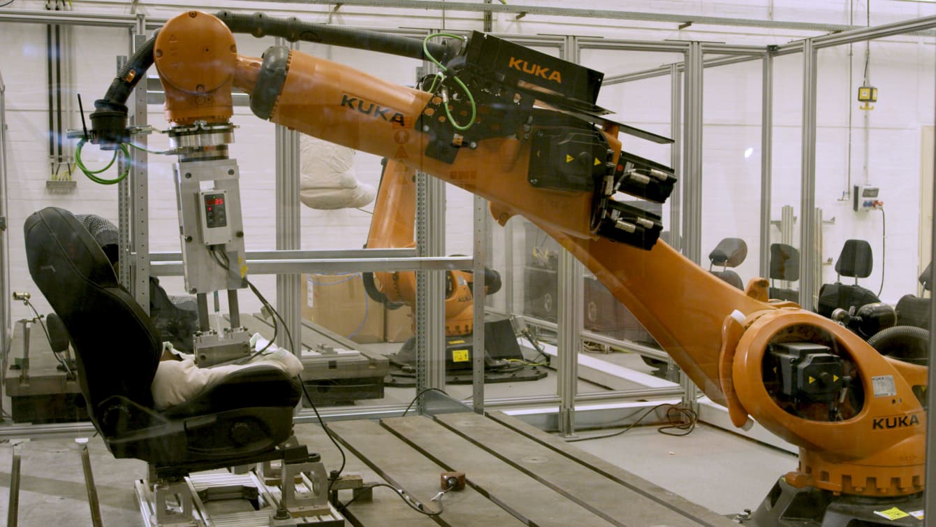 I den nye svettetesten simulerer «Robutt» ti års vanlig bruk av bilsetet på bare tre dager. Den sitter, hopper og vrir seg rundt i setet hele 7500 ganger i løpet av disse dagene.