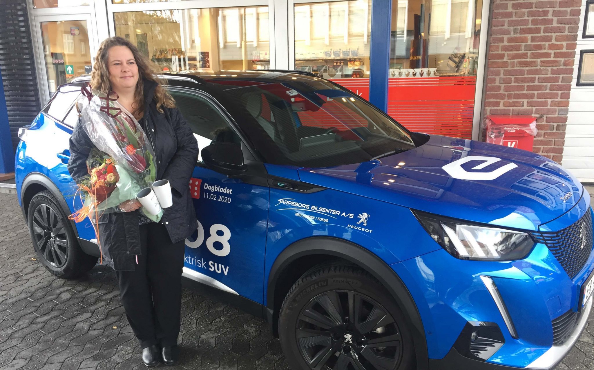 Sarpsborg-familien Lise Marie og Tor Øyvind Abrahamsen har vunnet en splitter ny Peugeot-e 2008 GT, etter å ha fått ett skrapelodd ved kjøp av en Coca Cola.