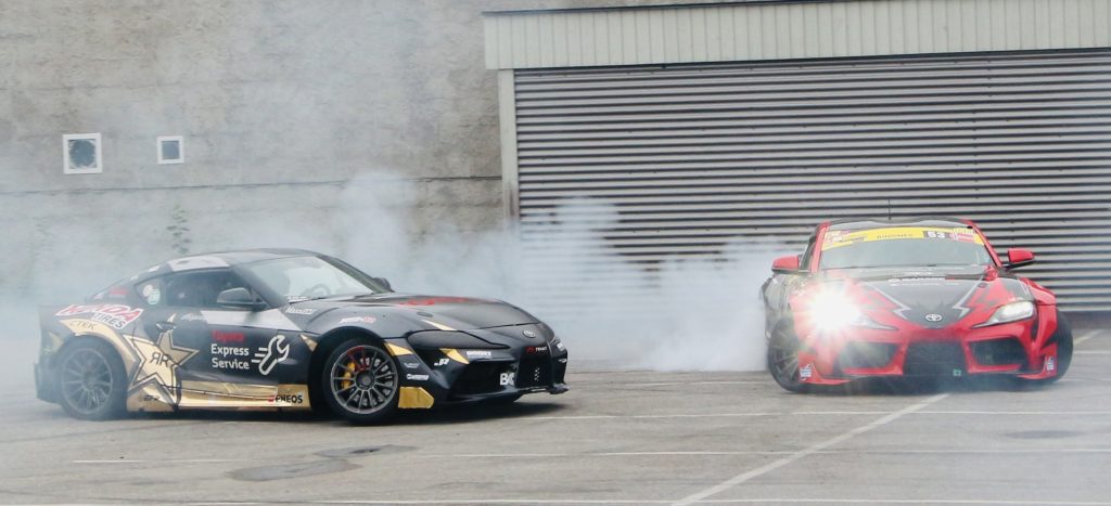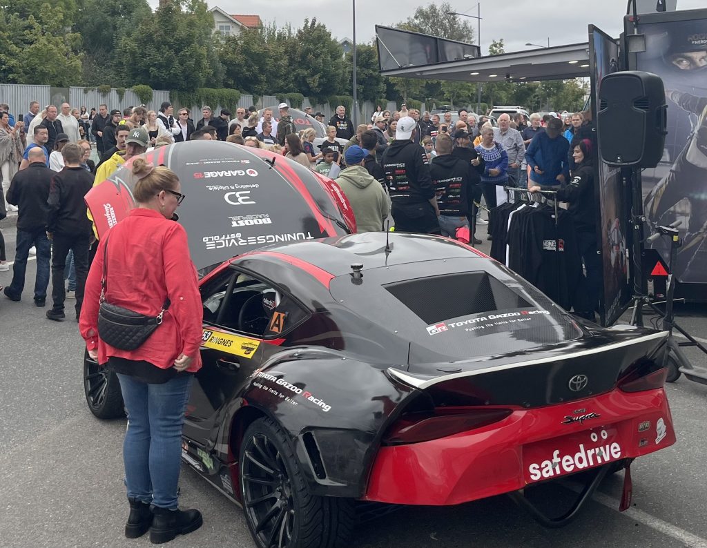 Driftingbilene var stilt ut sammen med flere spesielle Toyotaer, og folk ruslet rundt akkompagnert av skikkelig dunkemusikk. Her ble det bygget opp mot den store finalen. Aasbø og Ringnes sammen med to heldige loddvinnere, «sladdet» på den åpne plassen med ultrapresisjon.