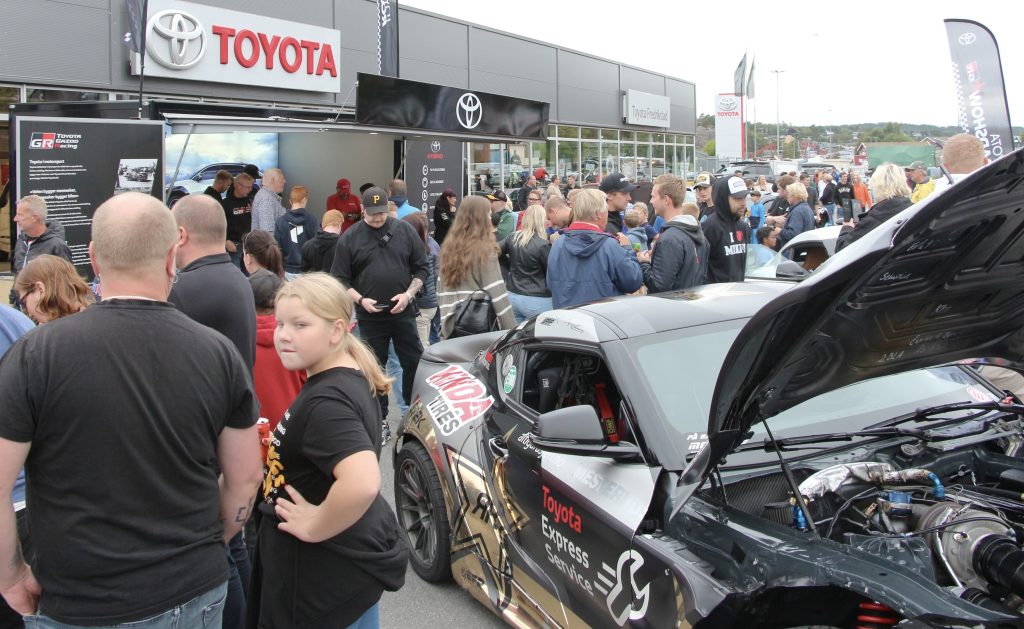Lukt av svidd gummi, og en motorlyd som kjentes godt i brystkassa. Norges driftingkonge Fredric Aasbø og kammerat Tor-Anders Ringnes fikk publikum til å måpe, da de showet med bilene sine på asfalten i gården hos Toyota Fredrikstad.