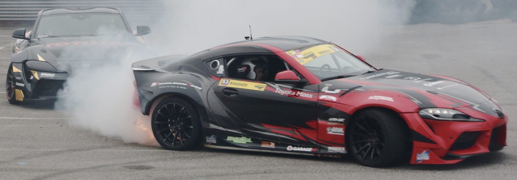 Driftingbilene var stilt ut sammen med flere spesielle Toyotaer, og folk ruslet rundt akkompagnert av skikkelig dunkemusikk. Her ble det bygget opp mot den store finalen. Aasbø og Ringnes sammen med to heldige loddvinnere, «sladdet» på den åpne plassen med ultrapresisjon.