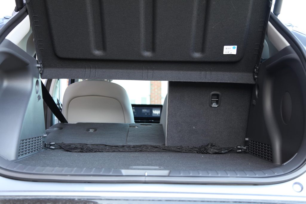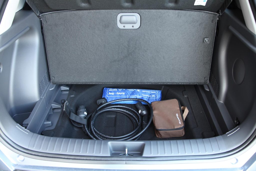 Under det flate bagasjeromsgulvet finner vi et ekstra oppbevaringsrom til ladekabel.