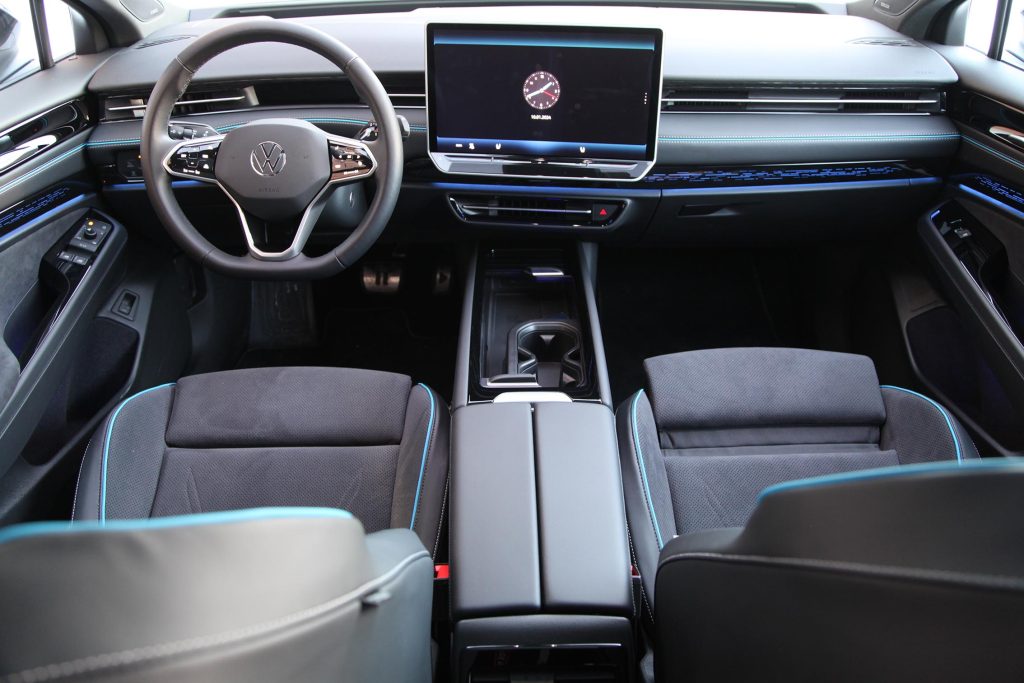 Innvendig nyter ID.7 også godt av elbilens kompakte drivverk. Dermed føles bilen langt større enn Passat i praktisk bruk. VW ID.7 framstår som en meget stor familiebil med opptil 615 km rekkevidde i første omgang.