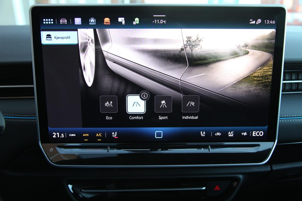 Det har skjedd teknologisk forandring siden vi sist kjørte en bil i ID-familien. Bilens 15″ touch-screen fargeskjerm har blitt oppgradert med 4.0 programvare. Det betyr at alle betjeningsfunksjoner utføres langt raskere enn tidligere.