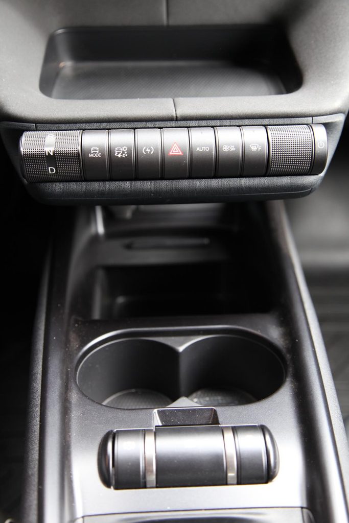 Fysiske knapper, gir velger som veksler riktig vei og to oppbevaringsrom til mobil, en med trådløs ladeplate og selvsagt kopler man til apple car play eller android auto.