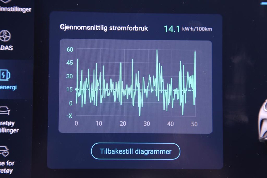 Diagrammet viser 14,1 Kwh 100 km, lavere enn offisielt oppgitt forbruk for BYD Dolphin.