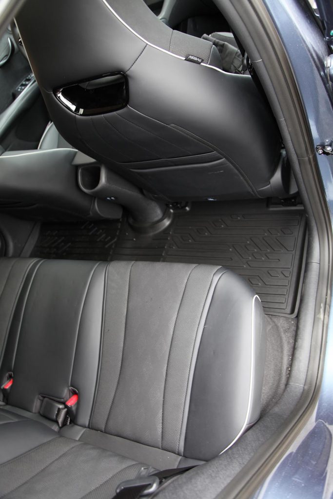 God plass for baksetepassasjerer, til venstre ser vi førersete langt bak og på høyre side i en mer normal posisjon.