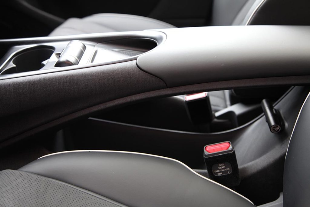 Man utnytter plassen maksimalt, elbil behøver ingen tunell under midtkonsollen, dermed ekstra oppbevaringsplass under.