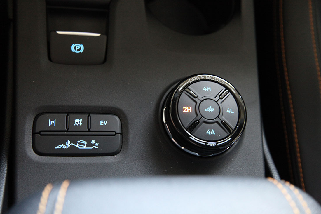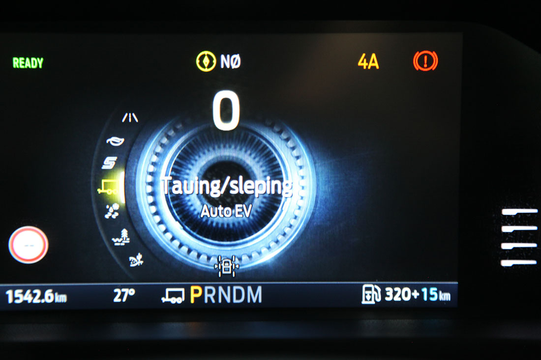 Kjøreopplevelsen er typisk Ford Ranger – robust, men komfortabel. Hybriden har i tillegg fordelen av elmotorens motorbrems via regenerativ lading – nyttig både i terreng og med 3,5 tonn på hengeren.