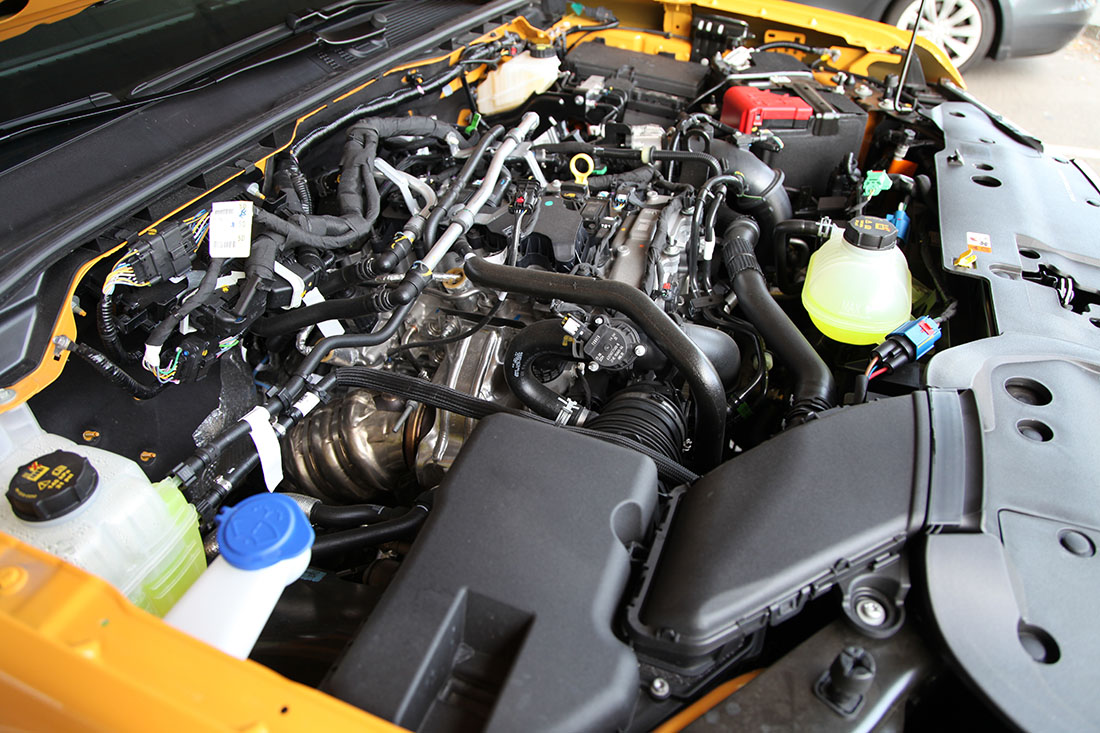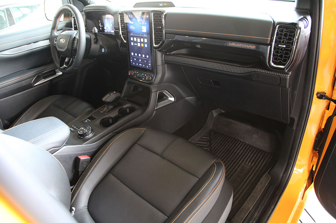 Fjæringsoppsettet i vår Wildtrak-testbil er forbedret for økt komfort og stabilitet. I tillegg har Ford benyttet aktiv støydemping, som bruker tre mikrofoner i kupeen for å registrere og kansellere uønsket motorstøy.