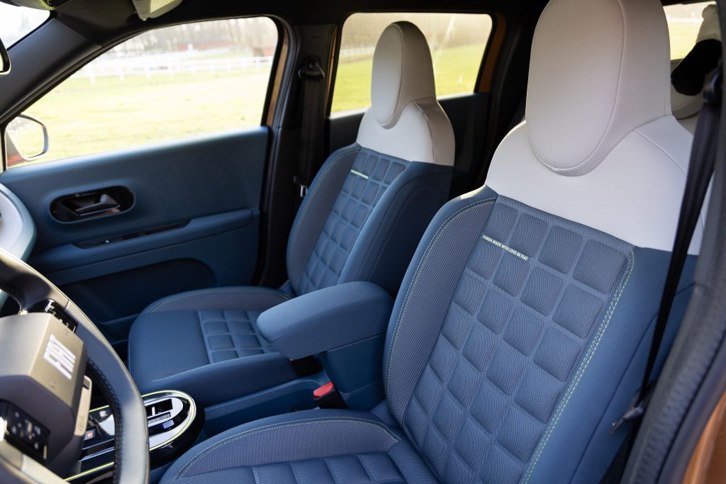 Det er også mange artige detaljer i førermiljøet på Pandaen. Blant annet har instrument-panelet fått en oval-ramme som refererer til den legendariske Lingrotto-testbanen på toppen av Fiat-fabrikken i Torino. Og i førersetene står skriften «Panda made with love in Fiat» i kontrast-farget tråd.