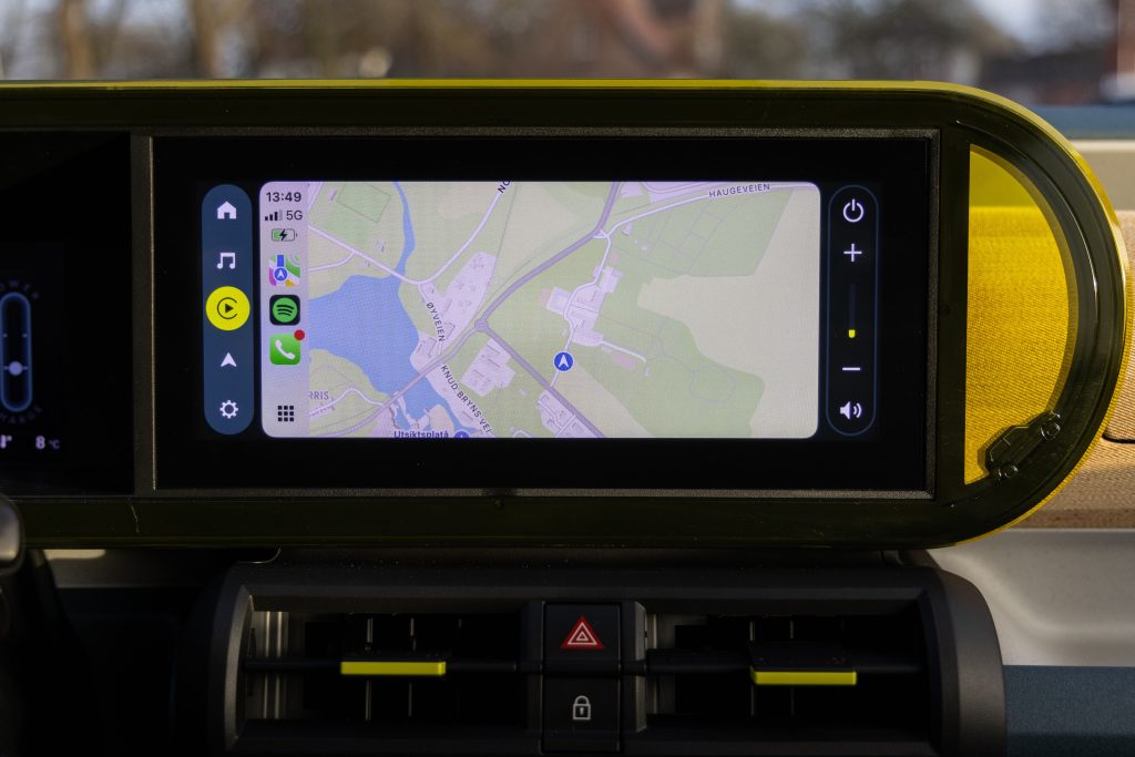 Det er enkelt å finne frem på informasjonsskjermen, og det er en fordel at to fysiske knapper gir deg muligheten til å slå av varsler, uten at man må gå inn i menyen for å gjøre dette. Også klima-anlegget styrer man ved å trykke på fysiske knapper.
